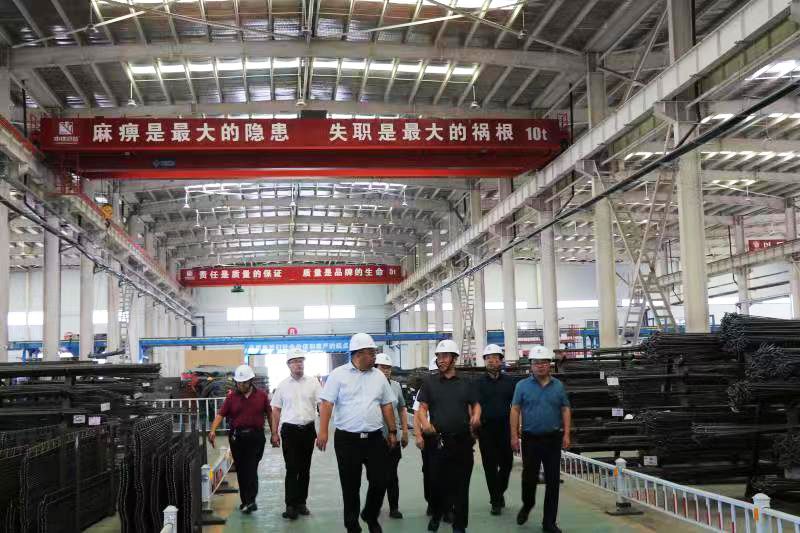 在中鐵滄鹽公司,劉建軍參觀了堆場預制柱加工、車間生產(chǎn)線。中鐵滄鹽董事長王峰偉、總經(jīng)理王志巖同步講解了產(chǎn)品的生產(chǎn)流程、工藝工法,詳細介紹了中鐵滄鹽生產(chǎn)運營、質(zhì)量管控、管理模式、在建項目情況以及市場開拓等情況。劉建軍對中鐵滄鹽公司管理運營模式給予了高度評價,要求中鐵滄鹽在保證生產(chǎn)質(zhì)量、進度的同時,抓好現(xiàn)場安全管理,要按照“五步工作法”要求,統(tǒng)籌兼顧,抓緊設(shè)備改造升級、市場對接、產(chǎn)品研發(fā)、延鏈補鏈等工作,以優(yōu)異成績迎接黨的二十大勝利召開。