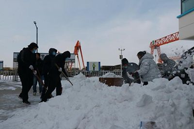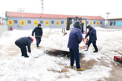 12月13日至15日的降雪天氣過程,場區(qū)降水量達(dá)到10.3毫米,各生產(chǎn)廠區(qū)積雪厚度超過10厘米,給職工出行和正常生產(chǎn)帶來較大影響。15日清晨,各單位積極行動,組織在崗黨員干部職工,全力清除積雪。