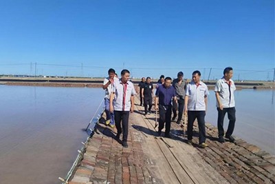 8月26日特大暴雨過(guò)后,長(zhǎng)蘆公司在做好淡水出灘的同時(shí)及時(shí)回收塑膜,對(duì)結(jié)晶池進(jìn)行逐灘逐池摸排,全體制鹵人員晝夜進(jìn)行二次片淡保鹽并展開鹵水排隊(duì)。為檢驗(yàn)生產(chǎn)措施成效,長(zhǎng)蘆公司對(duì)25隊(duì)、26隊(duì)的災(zāi)后生產(chǎn)恢復(fù)、結(jié)晶管理和鹵水排步等各項(xiàng)工作進(jìn)行了觀摩學(xué)習(xí)和經(jīng)驗(yàn)交流。