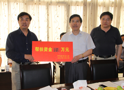 陳杰平代表全國總工會向滄鹽公司捐贈了10萬元幫扶資金和數(shù)萬元的專業(yè)技術書籍;慰問了部分困難職工和省級以上勞動模范,與他們進行了親切交談,向他們發(fā)放了慰問金和米面油等生活必需品;并與程同海一起,為公司職工書屋揭牌。