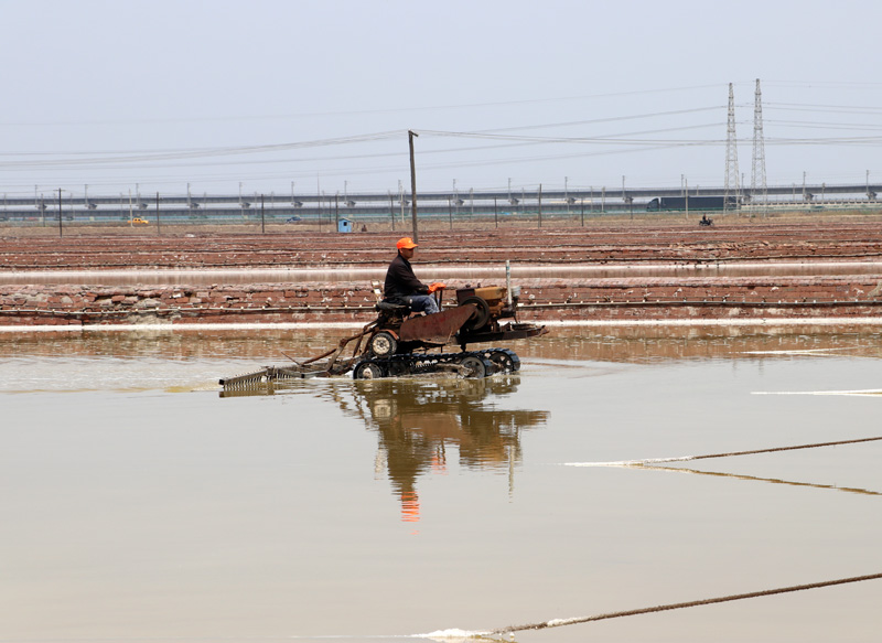當秋扒即將過半,10月7日-10日,公司遭受了風暴潮襲擊,最大降雨量達到86.6mm。為了確保鹽田不受損失,長蘆鹽業(yè)公司領(lǐng)導未雨綢繆,提前停止了扒鹽,并提前保好鹵,塑苫全部拉放到位,盡最大努力降低鹽鹵損失。由于安排細致周密,采取措施果斷有效,同時各單元職工24小時全員在崗,不定時進行巡查,確保了這場災害性天氣中各灘田沒有受到較大損失,也為及時恢復秋扒生產(chǎn)奠定了基礎(chǔ)。