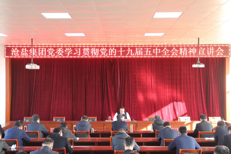 12月4日,滄鹽集團黨委學習貫徹黨的十九屆五中全會精神宣講會在公司二樓禮堂舉行。黨委書記、董事長劉建軍作宣講報告。