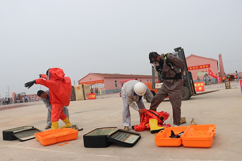 本次參加實(shí)戰(zhàn)演練的隊(duì)員40余人。活動(dòng)模擬了機(jī)械傷害、中暑、觸電、火災(zāi)、溴素燙傷、氯氣泄露等6個(gè)事故場(chǎng)景。在應(yīng)急救援指揮部的統(tǒng)一指揮下和各應(yīng)急救援隊(duì)員的準(zhǔn)確處置下,人員得到了有效疏散,傷員得到了及時(shí)救助,事故得到有效控制,全面檢驗(yàn)了指揮調(diào)度效率和救援隊(duì)伍的應(yīng)急實(shí)戰(zhàn)水平,確保了遇到突發(fā)事件能“拉得出、攻得上、打得贏”。演練同時(shí)還進(jìn)行了消防技能、空呼機(jī)穿戴、防化服穿戴、空呼機(jī)穿戴30米跑等比武活動(dòng)。