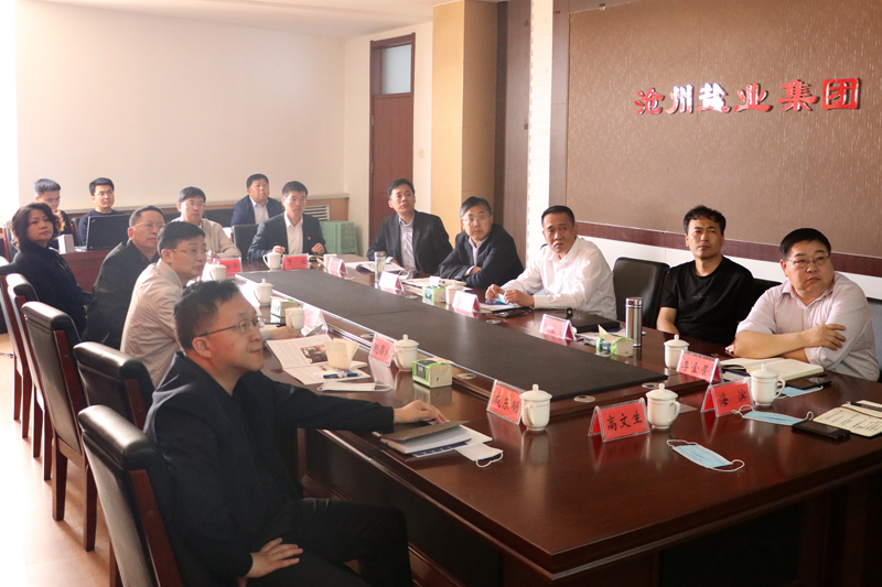湖南鹽業(yè)雪天科技董事長(zhǎng)陳新、湘恒鹽化副總經(jīng)理趙昌武,公司領(lǐng)導(dǎo)張立莊、文興峰、李金營(yíng)、于劍參加了洽談。