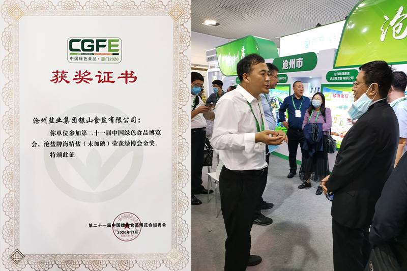 11月4日至11月8日,公司總經(jīng)理張立莊帶隊(duì)赴福建省廈門市參加了第二十一屆中國(guó)綠色食品博覽會(huì)。"滄鹽"牌未加碘海晶鹽在眾多參展產(chǎn)品中脫穎而出,獲得本屆博覽會(huì)金獎(jiǎng)。