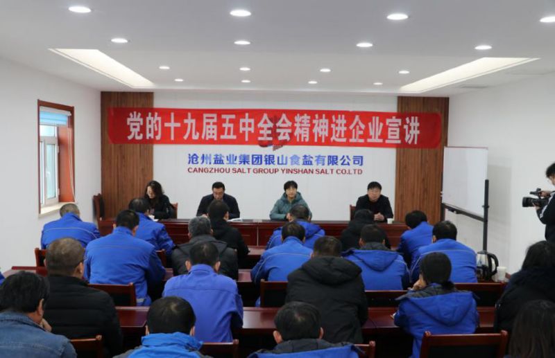 12月29日,黃驊市科技工信和商務(wù)局宣講團(tuán)分別來(lái)到長(zhǎng)蘆公司、銀山食鹽公司進(jìn)行“黨的十九屆五中全會(huì)精神進(jìn)企業(yè)宣講”活動(dòng),兩公司副科級(jí)以上管理人員、部分生產(chǎn)骨干參加了學(xué)習(xí)。