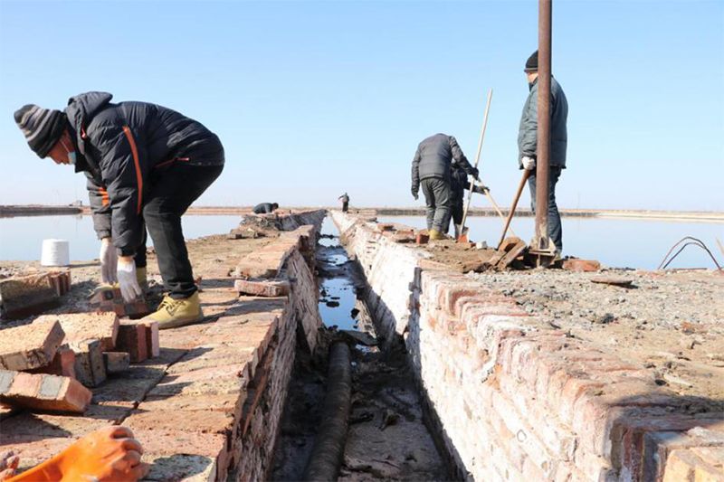 青鋒鹽業(yè)公司本著修一得一的原則,夯實生產(chǎn)基礎(chǔ),強(qiáng)化各項生產(chǎn)措施,積極開展了冬季修灘工作,投入機(jī)械設(shè)備共維修蒸發(fā)池、調(diào)節(jié)池2240公畝,技改趕鹵池640公畝,努力為提高產(chǎn)能打好基礎(chǔ)。