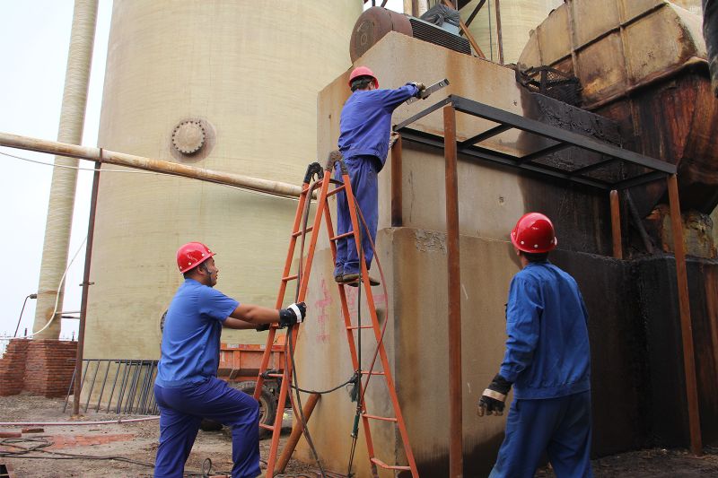 2017年溴素公司成立后,針對落后的操作工藝和設(shè)備設(shè)施,經(jīng)理李東亮按照集團(tuán)公司產(chǎn)業(yè)升級的目標(biāo),投入大量資金,帶領(lǐng)干部職工先后對廠區(qū)及設(shè)備進(jìn)行升級改造。將溴素二廠水泥吹出塔改造為纏繞式玻璃鋼塔 ,對危舊房屋進(jìn)行拆除,對硫磺燃燒車間、職工餐廳進(jìn)行整體搬遷,供電設(shè)施改造成集成箱式變壓器;將溴素三廠吹出塔內(nèi)主鹵水管道改為外置,更換了鹵泵和吹出塔填料,對鹵水供鹵管道進(jìn)行整改,廠區(qū)全面硬化,兩個溴素廠面貌為之一新。
