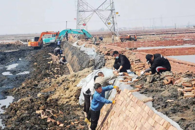 2022年4月8日,是渤海新區(qū)港城區(qū)結束疫情封控的第二天,物流公司承接的長蘆公司的保鹵圈技改工程也在這一天勝利竣工。物流公司全體人員看到又一項工程完工,黝黑的臉上綻放出勝利的笑容,工程也得到了長蘆公司各級部門的一致好評。為加快長蘆鹽業(yè)保鹵圈技改工程、保證鹵水正常調配,物流公司包括機關后勤人員在內的全體人員自愿封控在場區(qū),全身心投入到長蘆公司灘田技改“會戰(zhàn)”中,經過連續(xù)8天的努力,共砌磚6.5萬塊,如期完成了78號、80號灘保鹵圈技改任務。