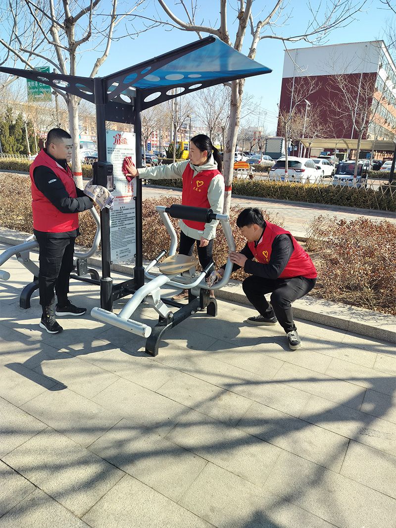 活動(dòng)中,團(tuán)員青年發(fā)揚(yáng)不怕苦、不怕累的光榮傳統(tǒng),對(duì)廣場(chǎng)的健身器械全面擦拭、對(duì)花壇、綠化帶、人行道的垃圾、煙頭全面清理,不放過(guò)一個(gè)死角。