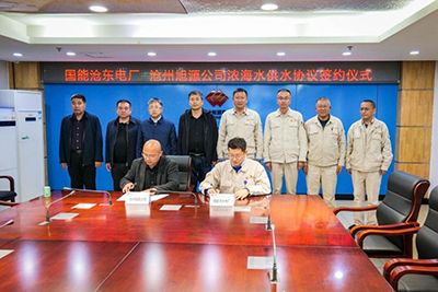 4月6日,黨委副書記、總經(jīng)理張立莊帶隊(duì)赴國能滄東電廠,與國能滄東電廠董事長楊知社進(jìn)行合作會(huì)談,并成功簽署了濃海水供水協(xié)議。