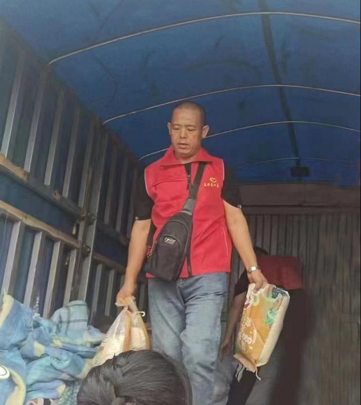 7月29日早晨5時(shí),張?jiān)驍y妻兒與所屬的渤海新區(qū)黃驊市港城區(qū)春暉志愿者團(tuán)隊(duì)聯(lián)合渤海新區(qū)黃驊市紅色朝陽志愿者團(tuán)隊(duì),共計(jì)50余人驅(qū)車四百多公里前往保定淶源愛心互助家園,為當(dāng)?shù)毓鹿牙先思皟和腿チ艘路、被子、鞋、米、油、書包、筆等生活、學(xué)習(xí)物資必需物品。這是張?jiān)蛉业谌稳Z源山區(qū)進(jìn)行志愿服務(wù)。