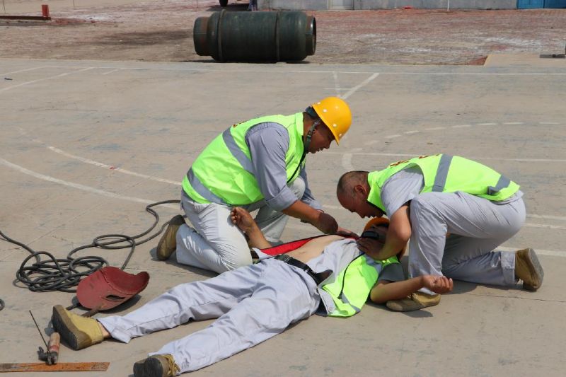 本次演練模擬了機械傷害、中暑、觸電、火災(zāi)、溴素燙傷、氯氣泄漏等六個事故場景。演練開始前,進行了空呼機穿戴、全封閉防化服穿戴、空呼機穿戴30米跑、消防等技能比武活動。通過演練和技能比武,提高了消防、搶險突擊隊快速、正確、有效地救援、應(yīng)變處置能力,筑牢了安全生產(chǎn)最后一道防線,為進一步完善集團公司事故應(yīng)急管理體系奠定了堅實的基礎(chǔ)。