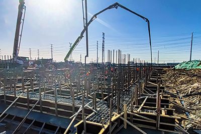 日前,該項目基礎(chǔ)鋼筋綁扎已順利通過驗(yàn)收,基礎(chǔ)混凝土澆筑施工正在加快速度積極推進(jìn)中。