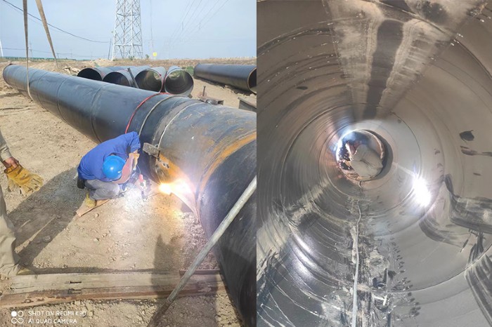 鹵水泵站輸水管道是鹵水供應(yīng)系統(tǒng)的重要組成部分,其質(zhì)量和穩(wěn)定性直接關(guān)系到鹵水的供應(yīng)效率和安全性,焊接工作尤為重要!皫煾怠眰冊诠さ噩F(xiàn)場切割、打磨、焊接,由于工作的特殊性,他們必須身穿長袖工作服,頭戴電焊帽,在烈日與弧光的雙重“烤驗”下,臉頰和后背已滿是汗水。然而,為確保管線每一道焊縫的焊接質(zhì)量、每一米管道的穩(wěn)定可靠,職工們抓工期,戰(zhàn)高溫、斗酷暑,確保鹵水泵站輸水管道工程安全、優(yōu)質(zhì)、高效進(jìn)行。