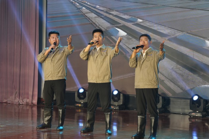 聯(lián)歡會在黃驊市紅色朝陽戰(zhàn)鼓隊演奏的鼓舞《紅紅火火》中拉開序幕,迅速點(diǎn)燃現(xiàn)場氣氛。隨后的獨(dú)唱《等待》、情景劇《穿越時空的對話》、薩克斯表演《鐵血丹心》、舞蹈《萬疆》、手語舞《一起走》、講述性朗誦《履職盡責(zé),做新時代的應(yīng)急奮斗者》、戲曲聯(lián)唱等20個節(jié)目輪番上演。其中男聲小合唱《曬鹽的漢子》書寫著一代代滿腔熱血的滄鹽人在這片百里荒灘上艱苦奮斗、開拓創(chuàng)新的偉大精神,瞬間將活動的氣氛推向高潮;詼諧幽默的三句半《滄鹽新風(fēng)尚有你還有我》展現(xiàn)了滄鹽職工的榮譽(yù)感和自豪感,以及對企業(yè)美好未來的期許與祝福;一曲《長蘆戀》迅速將人們拉進(jìn)30多年前鹽工生產(chǎn)生活的回憶里;滄鹽集團(tuán)三位國家級、省級、市級勞動模范合唱的《歌唱祖國》更是以飽滿的熱情唱出了對祖國的熱愛;實力唱將楊嵐雅、袁冰,滄州星月藝術(shù)團(tuán)的精彩表演更是博得了現(xiàn)場觀眾的陣陣掌聲。最后,演出在一首充滿陽光和希望的歌伴舞《陽光路上》落下帷幕。