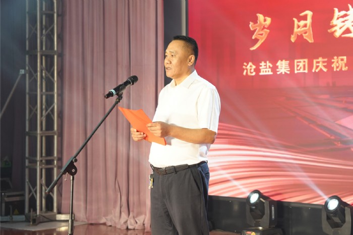 滄州市委宣傳部副部長王超,滄鹽集團(tuán)黨委書記、董事長劉建軍分別致辭。王超在致辭中充分肯定了滄鹽集團(tuán)在66年的發(fā)展歷程中取得的成績。他指出,新時代,滄鹽集團(tuán)要實現(xiàn)高質(zhì)量發(fā)展,必須高度重視思想政治工作,不斷創(chuàng)新思想政治工作的方式方法,提高思想政治工作的實效性。在中華人民共和國成立75周年即將到來之際,慶祝祖國生日的同時,我們要居安思危,強(qiáng)化國防觀念和憂患意識,增強(qiáng)干事創(chuàng)業(yè)的本領(lǐng),團(tuán)結(jié)一心、拼搏奮進(jìn),為實現(xiàn)滄鹽集團(tuán)的高質(zhì)量發(fā)展而努力奮斗,為建設(shè)經(jīng)濟(jì)強(qiáng)市、美麗滄州做出新的更大貢獻(xiàn)。