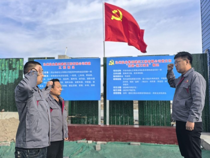 河北鳴岐化工有限公司醫(yī)藥中間體建設(shè)項(xiàng)目,一期工程項(xiàng)目金額5400余萬元,2024年10月6日正式進(jìn)場(chǎng)施工,同時(shí)“黨旗進(jìn)工地”也在同步開展。建筑公司黨支部嚴(yán)格“四制管理”,督促落實(shí)“五保措施”,和項(xiàng)目黨建負(fù)責(zé)人簽訂責(zé)任書。施工現(xiàn)場(chǎng)設(shè)立黨員示范崗,明確崗位職責(zé)和標(biāo)準(zhǔn),讓黨員在工作中有清晰的行動(dòng)目標(biāo)。在實(shí)際工作中,黨員們以身作則,作為項(xiàng)目管理人員,無論是在施工工藝的把控上,還是在工作效率的提升上,都展現(xiàn)出高標(biāo)準(zhǔn)、嚴(yán)要求的工作態(tài)度,充分發(fā)揮黨員的先鋒模范作用。