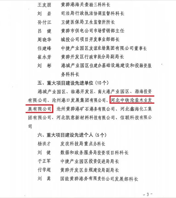 下一步,河北中鐵滄鹽木業(yè)發(fā)展有限公司將以此次表彰大會(huì)為契機(jī),嚴(yán)格按照市委、市政府及股東要求,進(jìn)一步完善項(xiàng)目手續(xù),加快項(xiàng)目建設(shè)速度,加大招商入園力度,為推動(dòng)渤海新區(qū)黃驊市經(jīng)濟(jì)社會(huì)高質(zhì)量發(fā)展貢獻(xiàn)力量。