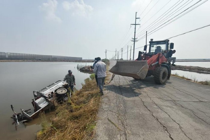 上午10時(shí)左右,海豐鎮(zhèn)村民駕駛?cè)嗆囃窘?jīng)建筑工程公司東側(cè)路段時(shí),因避讓車輛造成三輪車失控,連人帶車沖入路北的水中。三輪車落水后迅速傾斜下沉,情況危急,村民大聲呼救。