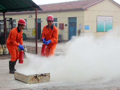 這次演練于8時(shí)30分正式開始,共分兩個(gè)演習(xí)科目,一是模擬火災(zāi)現(xiàn)場救援演練,二是模擬液氯鋼瓶泄漏救援演練。