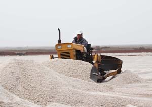 在原鹽生產(chǎn)中,“兩機(jī)兩塑、退池聯(lián)曬”工程的實施應(yīng)用發(fā)揮了突出的作用。節(jié)省勞動用工350人,年節(jié)省人工成本1500萬元,減輕了職工的勞動強(qiáng)度,提高了原鹽質(zhì)量,穩(wěn)定了原鹽產(chǎn)能。