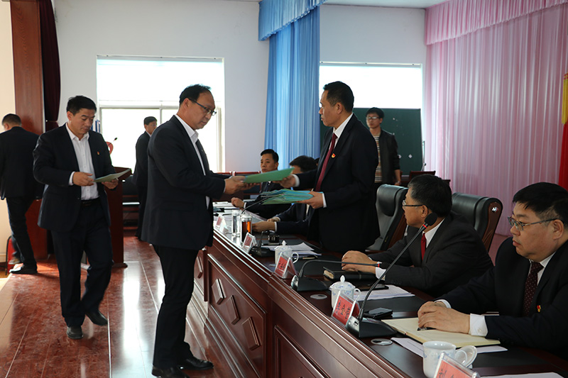 各單位和部分部室負責人向黨委書記、董事長劉建軍遞交了《經營目標責任書》和《安全生產責任狀》。