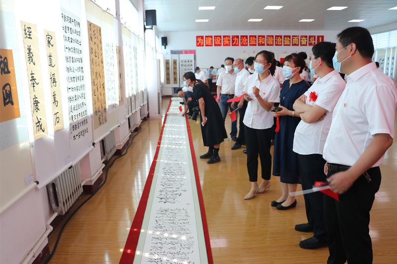 公司領(lǐng)導(dǎo)班子成員,黃驊市文聯(lián)、黃驊市書(shū)法家協(xié)會(huì)、黃驊市書(shū)畫(huà)院等有關(guān)單位領(lǐng)導(dǎo),黃驊市知名書(shū)法家及公司各總支(支部)書(shū)記、書(shū)畫(huà)愛(ài)好者共100余人參加開(kāi)幕式并觀看展覽。