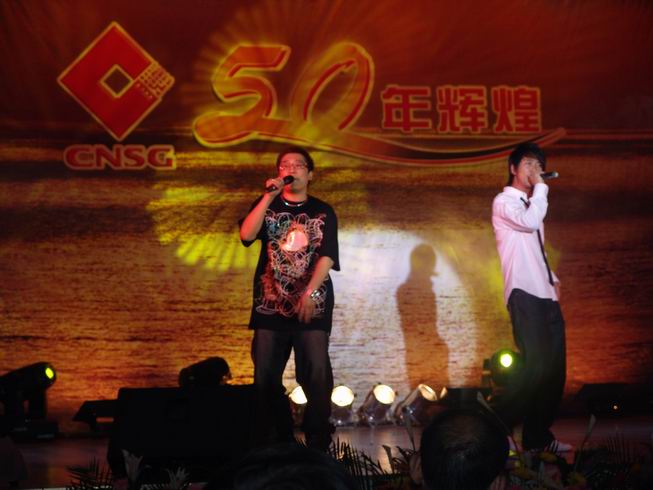 中鹽總公司副總經理萬建軍(右)即興演唱
